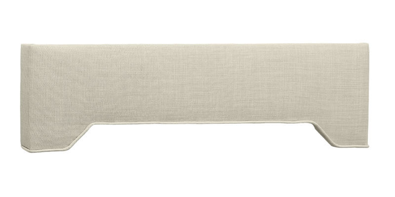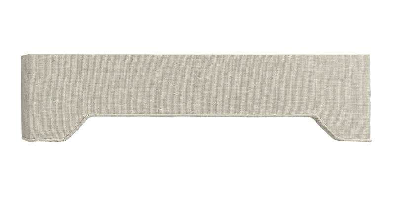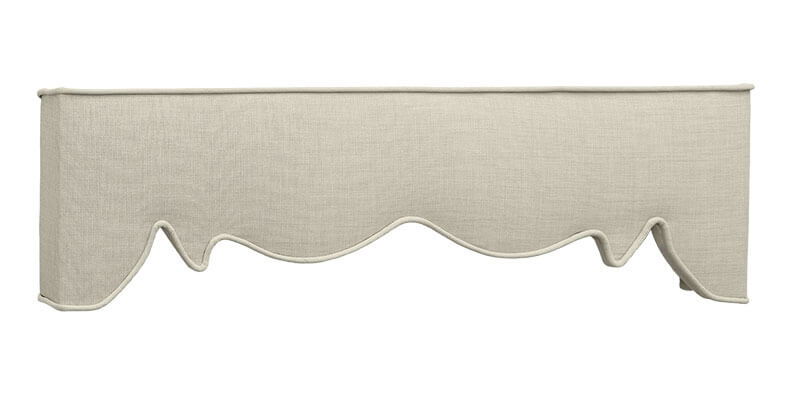 A padded cornice that features an intricate inset curved design with an upward center point.