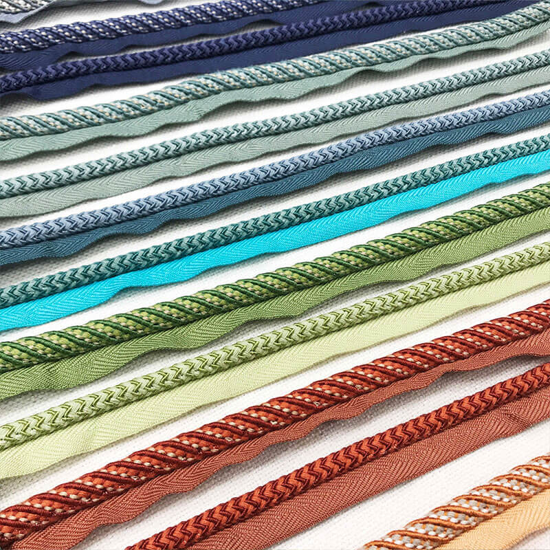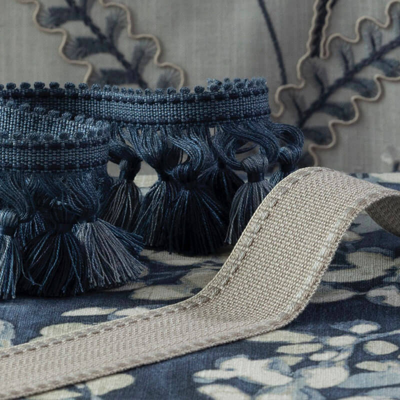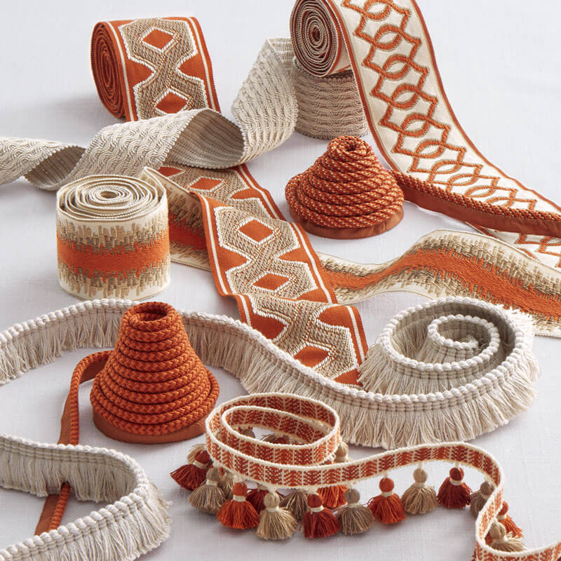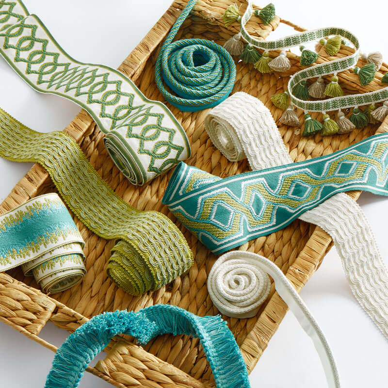 Carole Fabrics offers more than 250 trimming options to ensure you find the perfect accent for any fabric. Tapes, fringes, and cords abound in a wide array of styls and colors that are in step with current trends.