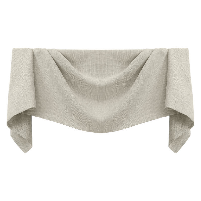 A three-panel valance that features a straight center panel with gently angled side panels.
