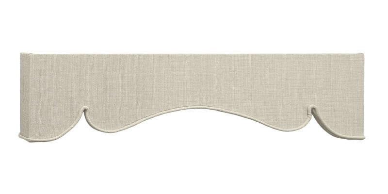 A padded cornice that features an intricate inset curved design with an upward center point.