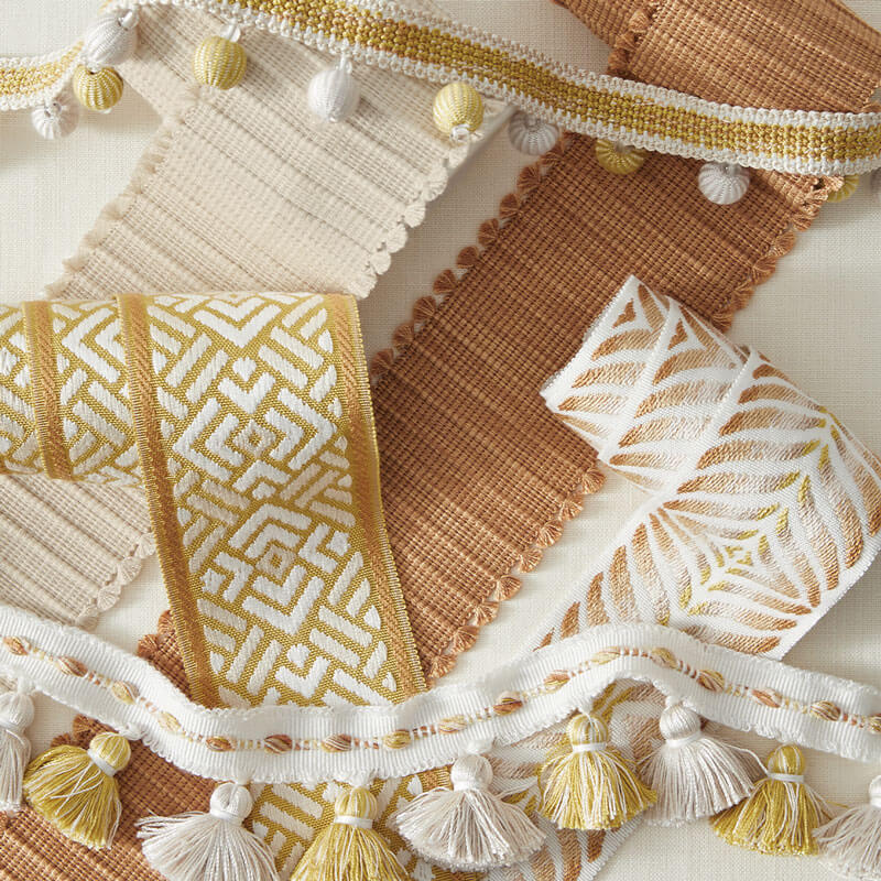 Carole Fabrics offers more than 250 trimming options to ensure you find the perfect accent for any fabric. Tapes, fringes, and cords abound in a wide array of styls and colors that are in step with current trends.
